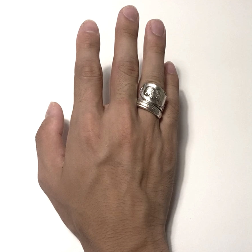 昔実際に使われていたアンティークのスプーンから作ったスプーンリング。アメリカ大統領 William Howard Taftの肖像が彫られています。