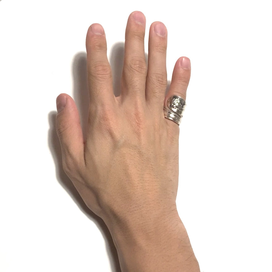 昔実際に使われていた,大統領の記念スプーンから作ったスプーンリング。アメリカ大統領 Andrew Johnsonの肖像が彫られています。