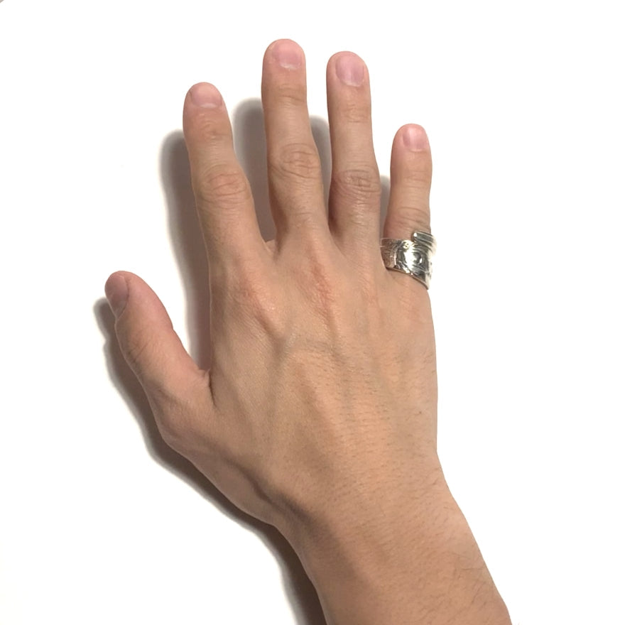 昔実際に使われていた,大統領の記念スプーンから作ったスプーンリング。アメリカ大統領 John Tylerの肖像が彫られています。